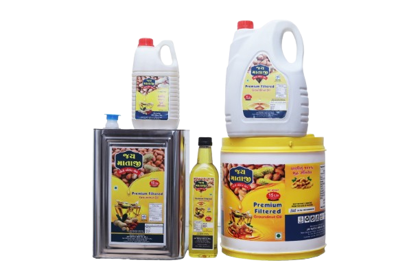 A cooking oil manufacturing mill processes raw seeds into groundnutt oil, using machinery to extract, filter, and package the final product.